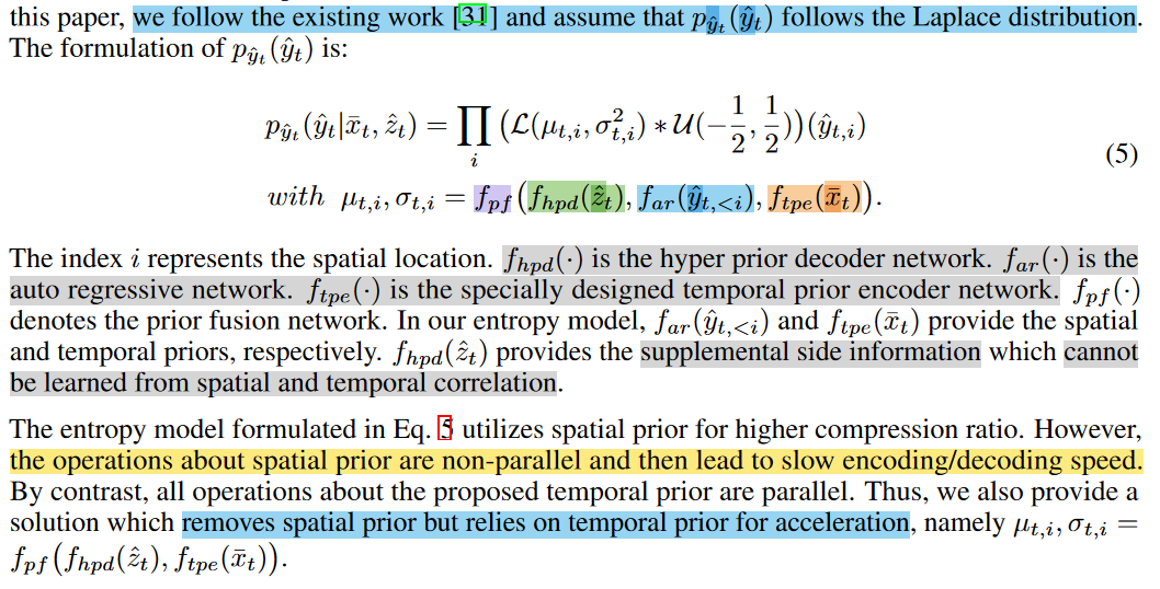 此外作者指出,残差编码实际为条件编码的简化,带有 “当前像素仅依赖于预测的像素” 的强假设,理论上当前像素与已解码的所有帧和当前帧的已解码部分都相关。 belike:(来自 https://arxiv.org/abs/2312.02753 )